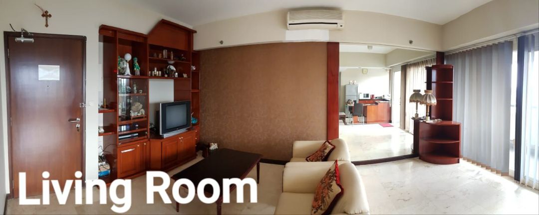 Unit apartmen 3 BR yang dirubah jadi 2 BR di Braga Citywalk di lantai 8 hook.