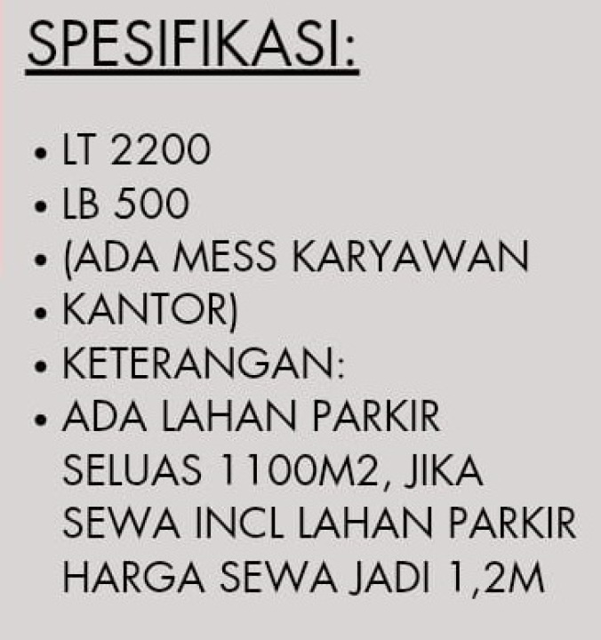 For rent di wilayah yang tenang. Dengan rinciannya adalah sebagai berikut: