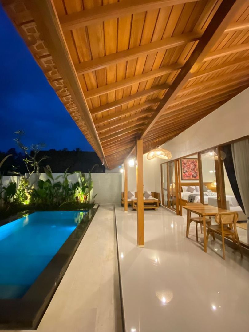 Hunian luxury siap huni di Ubud, Gianyar. 1 KT & 1 KM, LT 150m². Harga sewa premium: 30 Juta /hari. Dekat area bisnis.