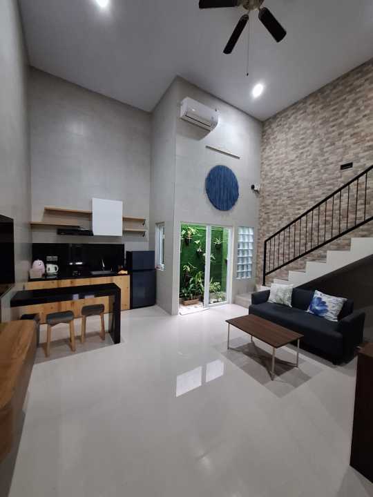 Entire house, a mezzanine floor on the west side of bypass Sanur Kauh area. Equipped with a kitchen, spacious living room, and car port