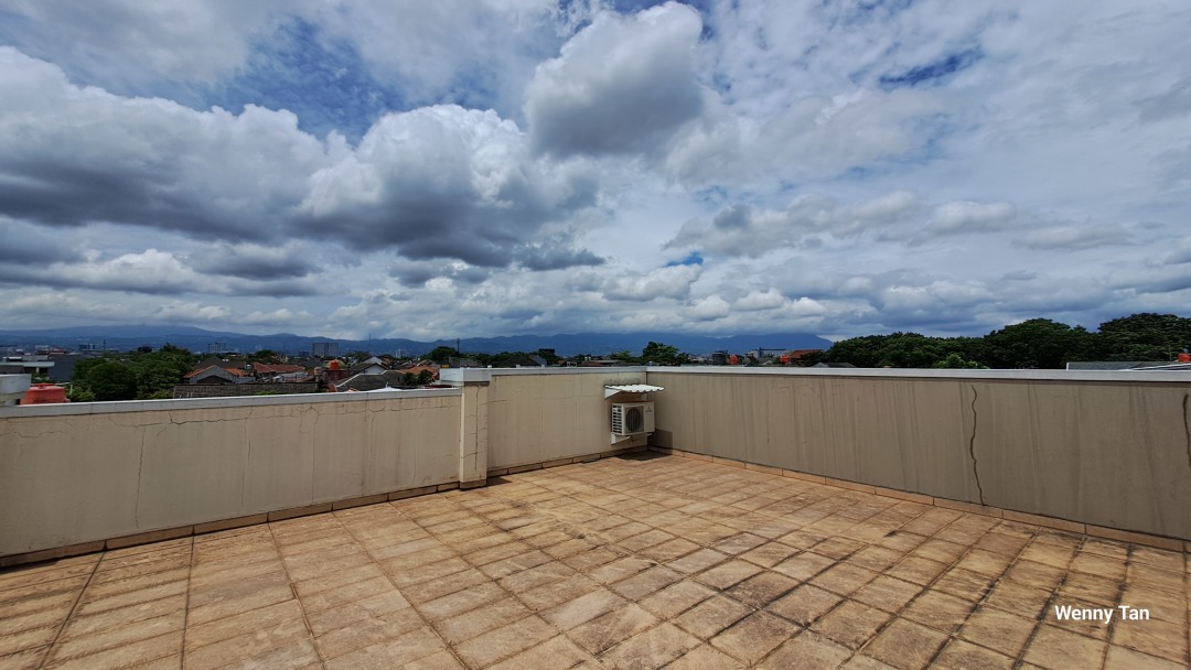 rooftop view kota dan pegunungan
