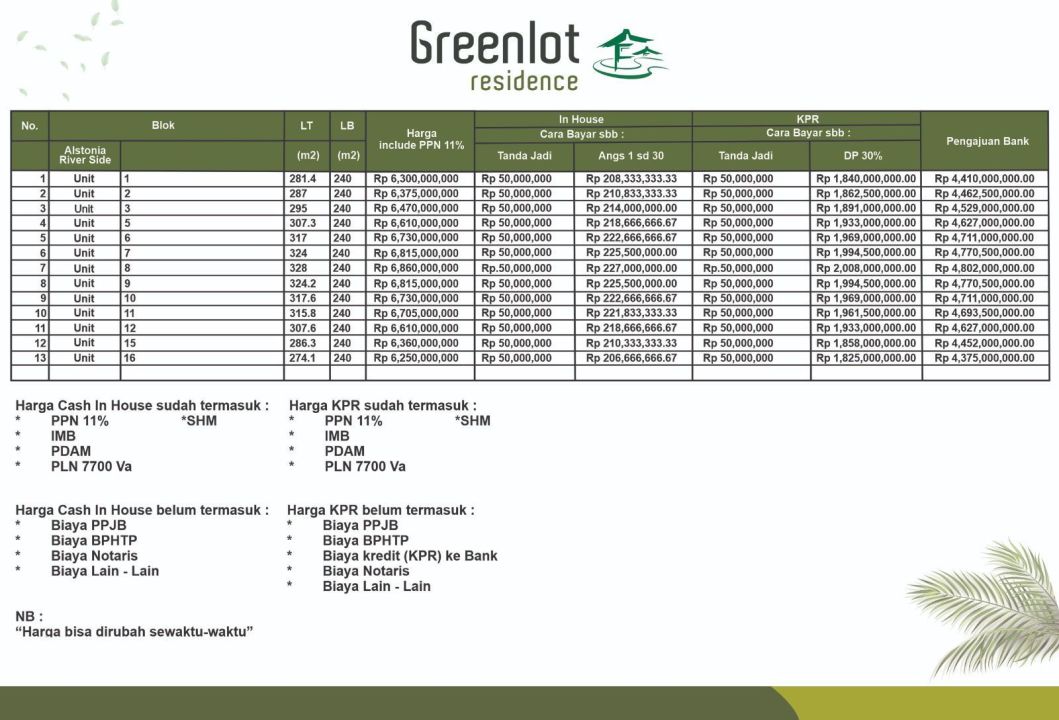 2. Terdapat biaya administrasi, appraisal, asuransi jiwa, asuransi kebakaran, notaris dan biaya lain dalam pengajuan KPR. Rincian biaya akan didapatkan setelah keputusan kredit diterima oleh calon debitur.