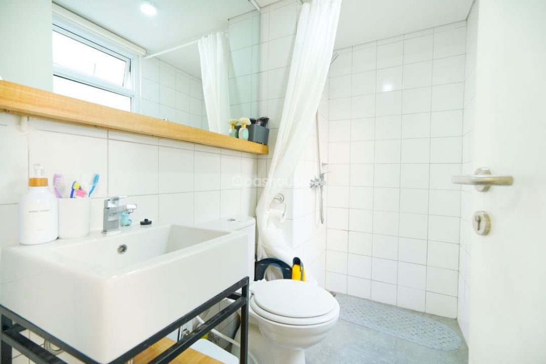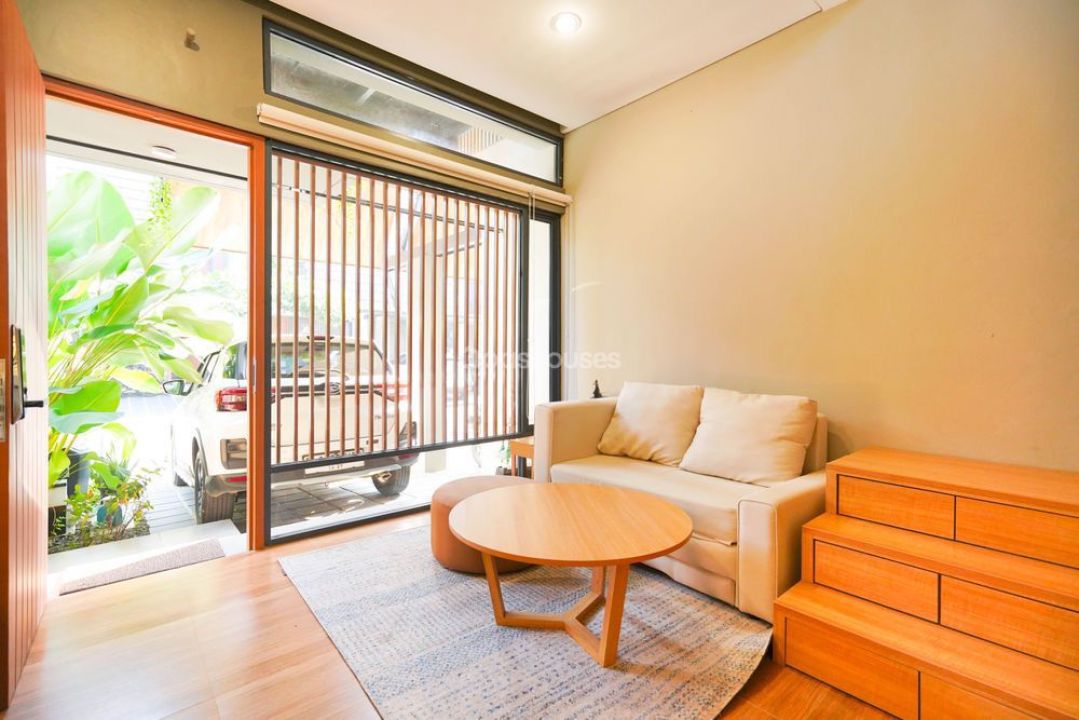 ruang keluarga (sofabed dan table), dua kamar (kasur dan lemari), kamar mandi (shower, toilet, sink), dapur (kompor, kulkas, microwave, water boiler, meja dan kursi makan) taman (automatic watering), 2 AC, smart door, cctv, modem internet