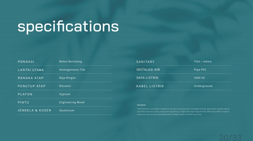 *Spesifikasi Bangunan* ( untuk tipe standard )