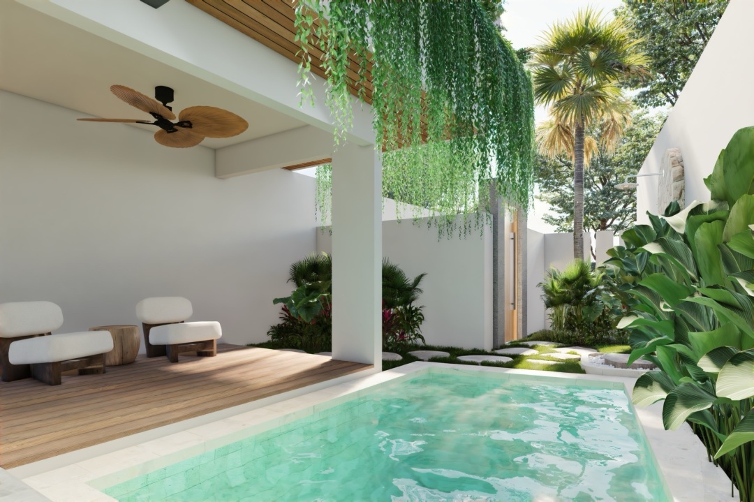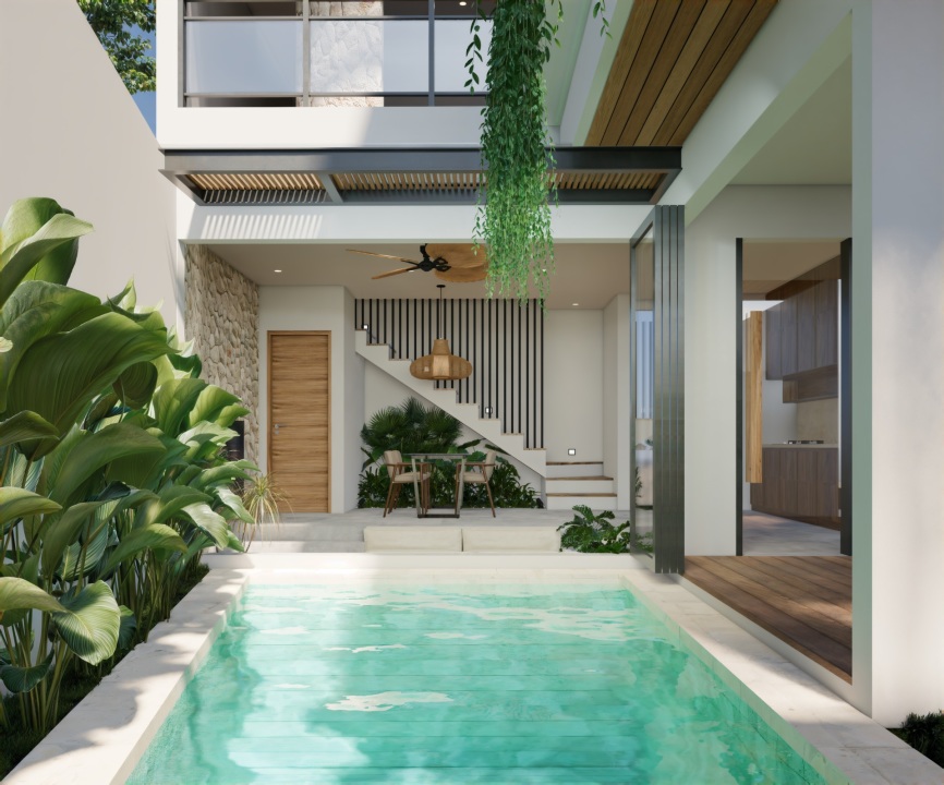 This charming tiny villa, featuring 2 cozy bedrooms, combines with tropical modern design with serene living.