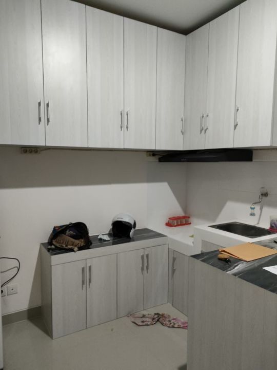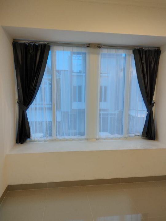 Canopy, pintu kawat, gorden, kitchen set, kulkas, 3 unit AC dan water Heater.