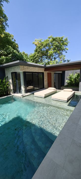 Kolam renang yg besar dan sunken daybed serta luxurious, sunken lounge