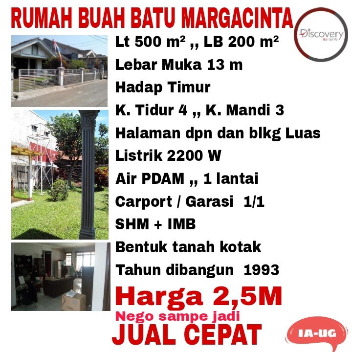 Rumah minimalis di kawasan Buah Batu, Bandung. Luas tanah 500m² dan luas bangunan 200m², dilengkapi 4 KT & 3 KM. Harga mulai 2,5 Miliar. Proses cepat.