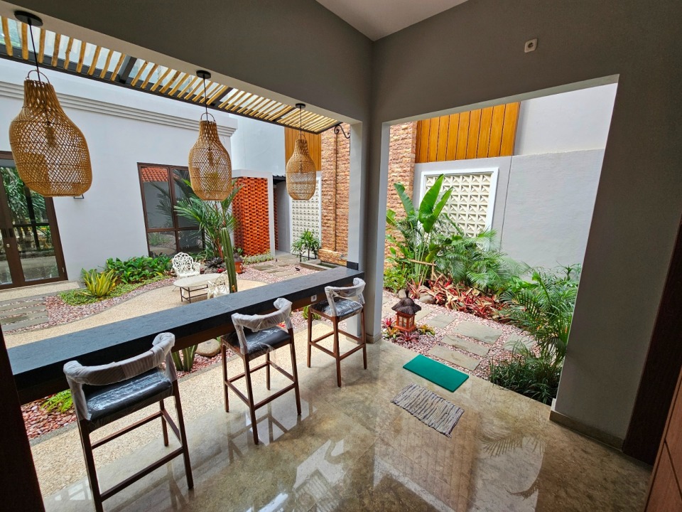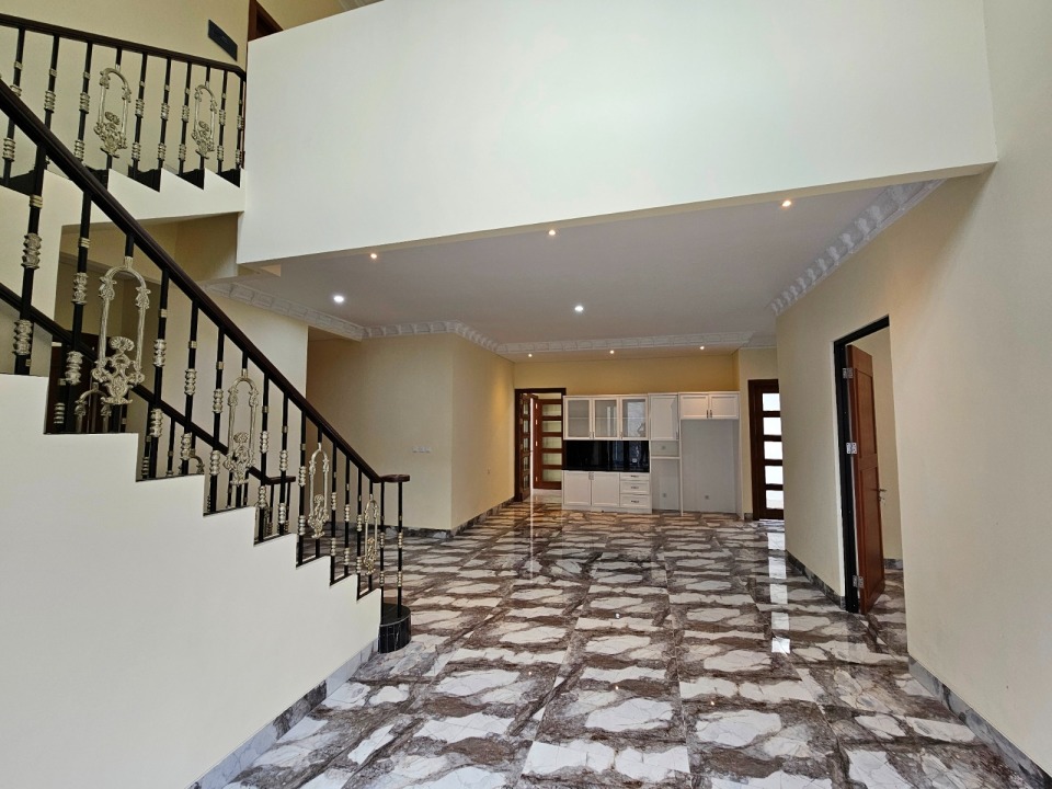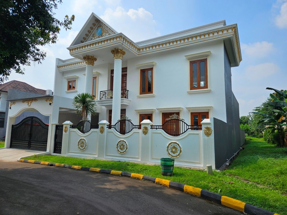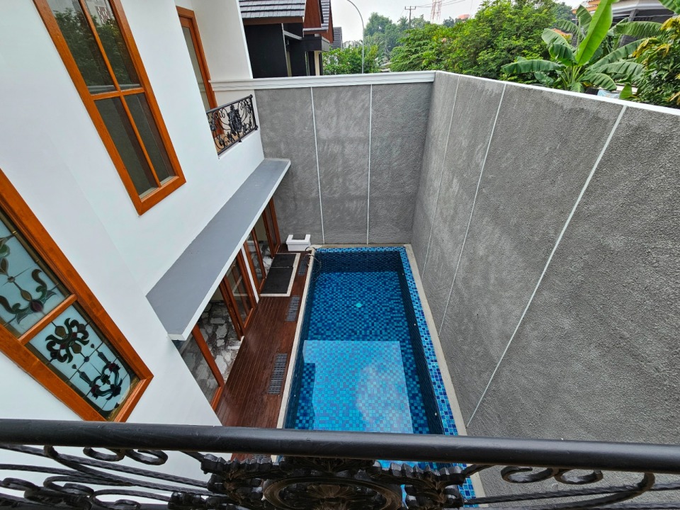 Rumah baru (Feb'25), Design Klasik, Rapi siap huni, bangunan 3,5 lantai (rooftop), High Ceiling, Listrik 3500W, Air PDAM & Sumur Bor, Kitchen Set, Dapur Basah dan Kering, Kolam Renang utk dewasa, 3 Kamar view ke kolam renang.