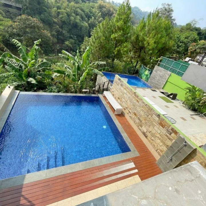 Dijual rumah villa 3 lantai dengan suasana sejuk, pemandangan bukit yang indah, serta fasilitas lengkap seperti private pool, ruang karaoke, dan meja bilyard.