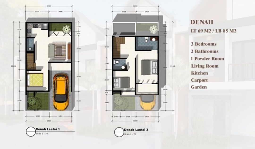 Luas Tanah: 69-83 m²