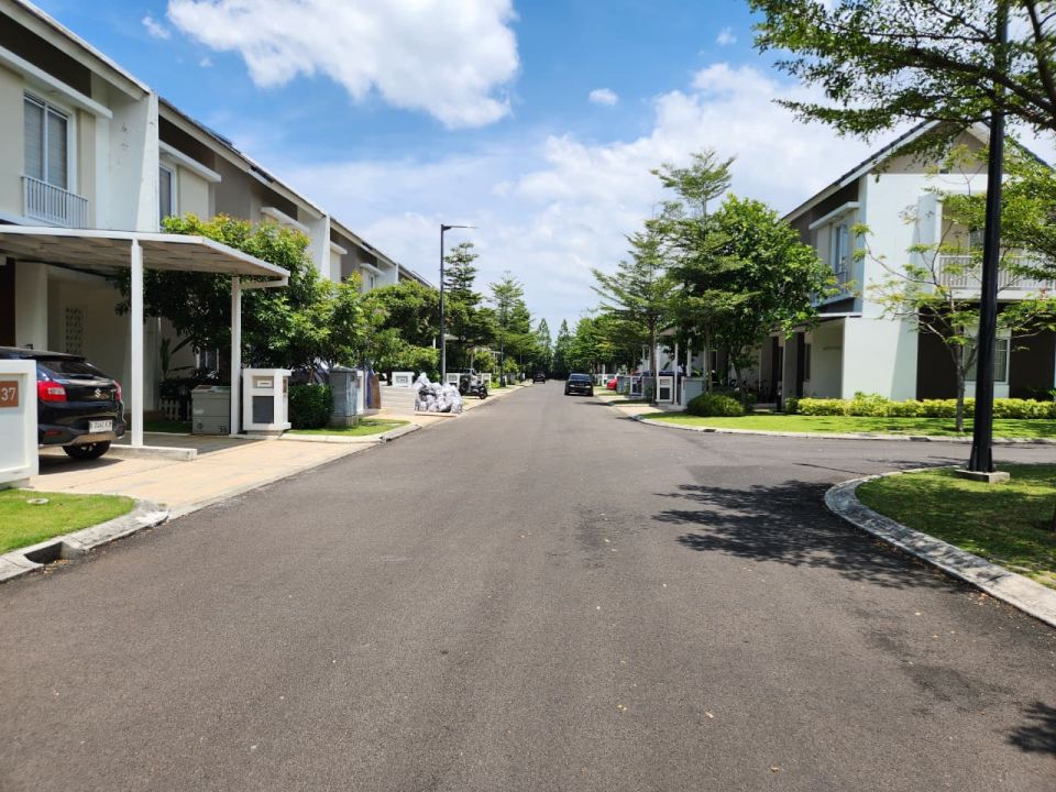 - Hadap utara ke taman bermain dan di belakang rumah dekat club house