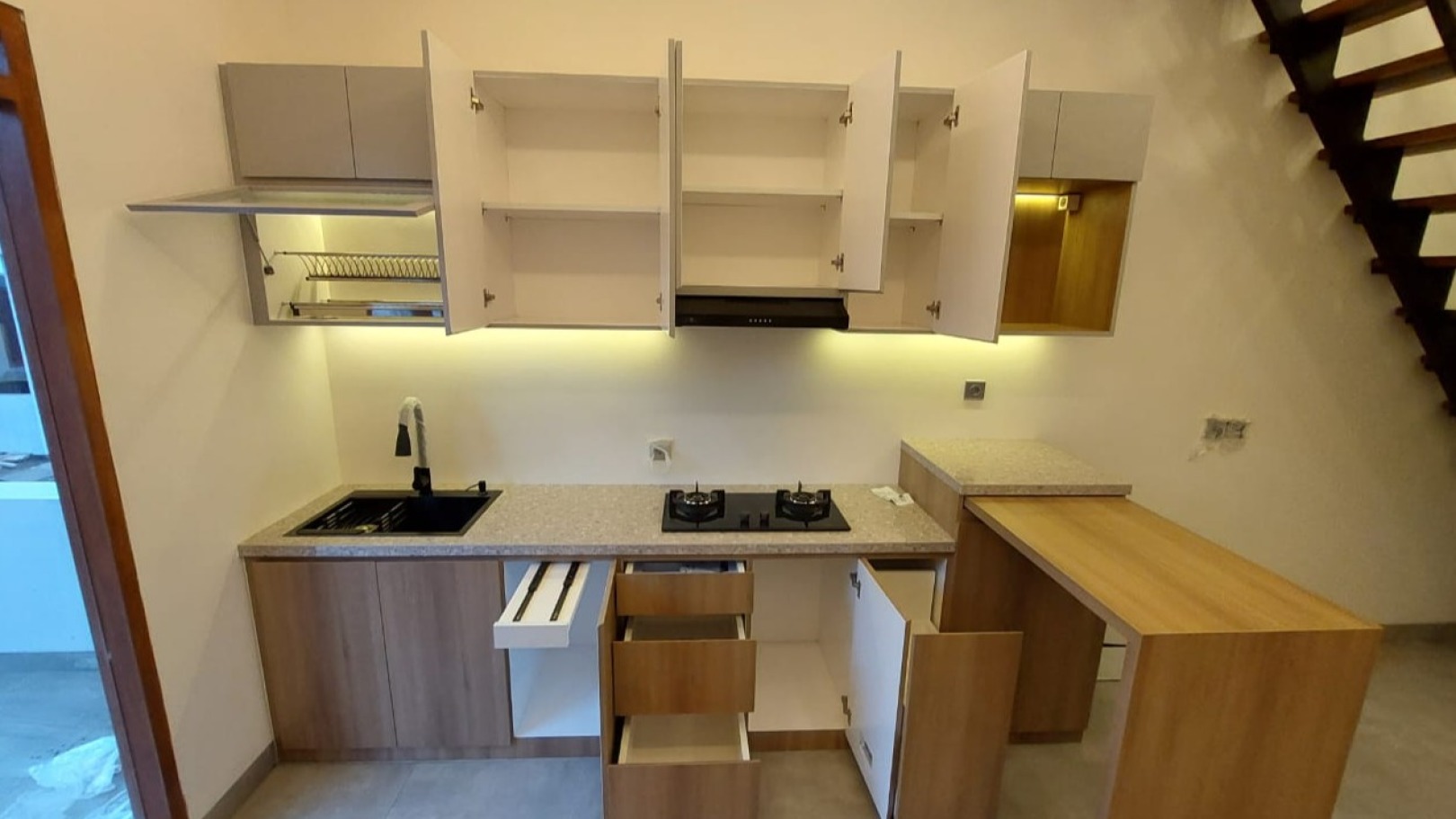 Kosong tanpa furnish. Kecuali kamar mandi dan kitchen area