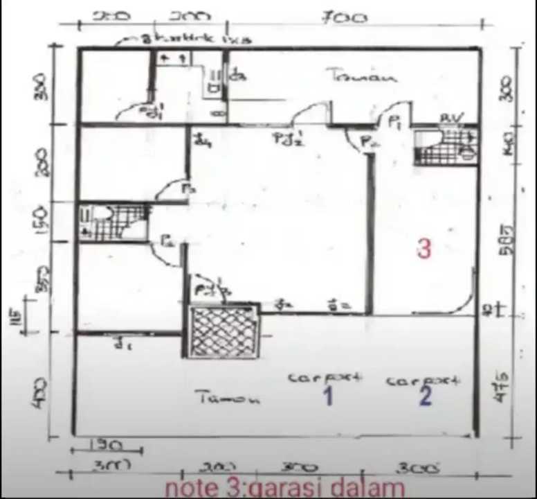 Total parkir: hingga 3 mobil di dalam area rumah