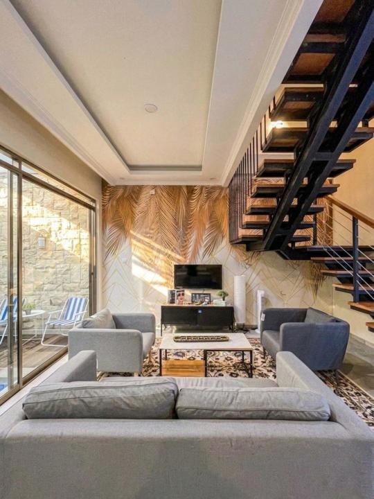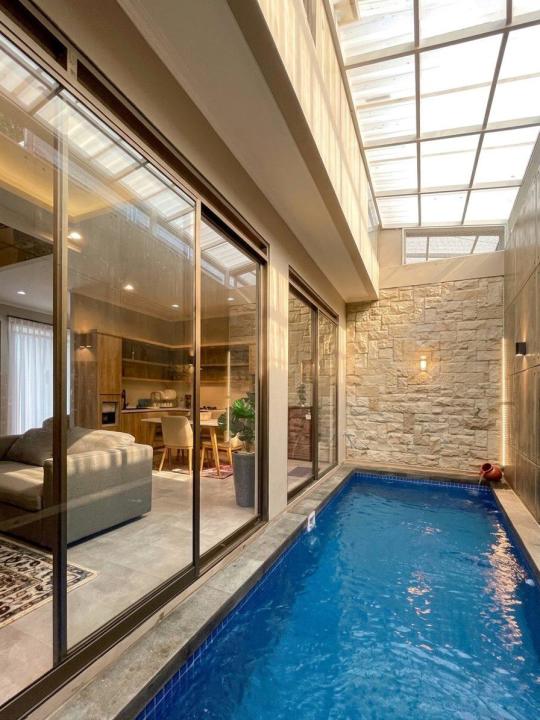 Instalasi water heater, instalasi Ac void , minipool ,service Area, Balkon depan belakang, Rooftop panoramic, Terrace , taman & carport