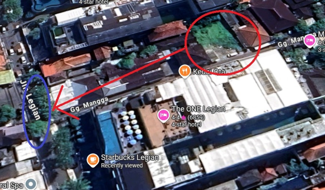 Sewa Tanah Strategis di Legian - Bali, Diapit oleh Dua Hotel Besar, Dekat Starbucks dan Akses Langsung ke Jalan Utama.