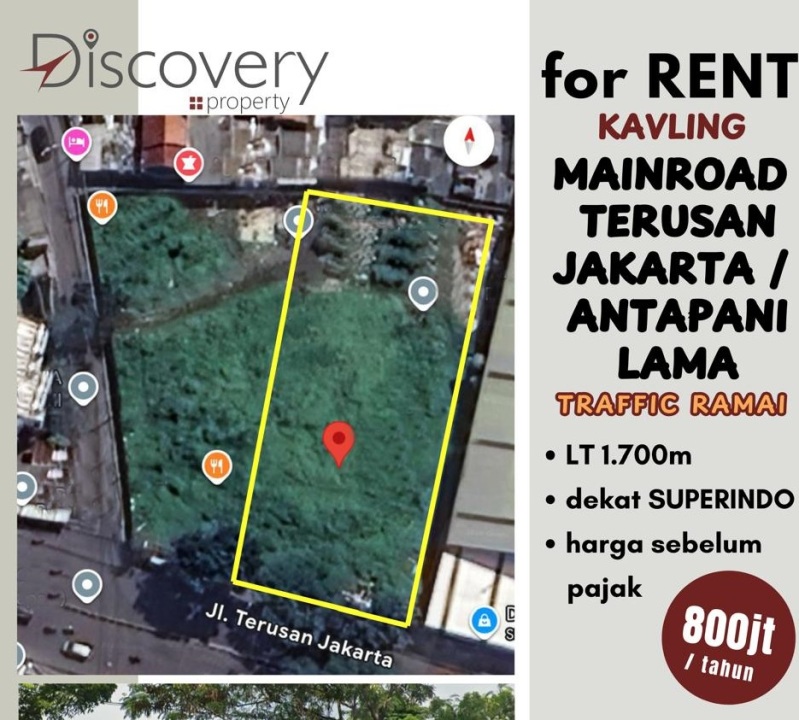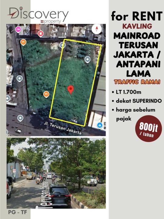 Di Sewakan Lahan Tanah Kavling Cocok untuk Jenis Usaha di Mainroad Jalan Terusan Jakarta Antapani Bandung