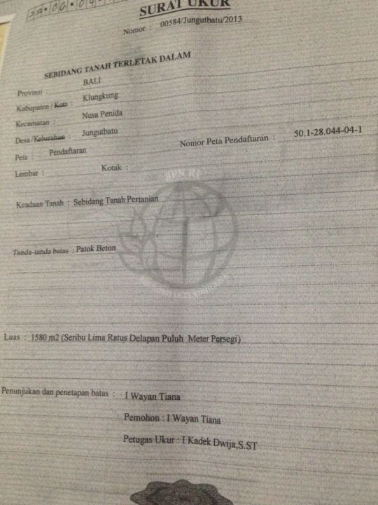 Dijual tanah eksklusif di kawasan elit Klungkung, Nusa Lembongan. Luas tanah 316000m², harga premium 5,84 Miliar. Cocok untuk hunian mewah atau investasi prestisius.