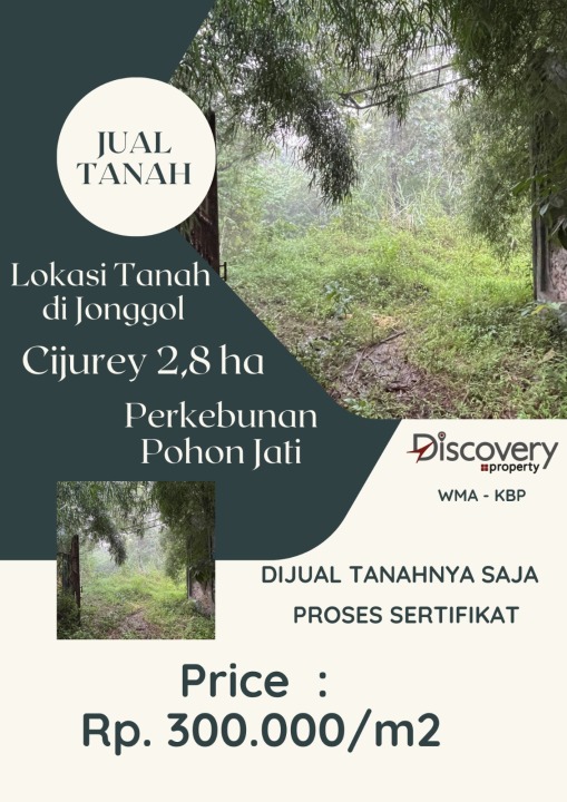 Tanah luxury di lokasi strategis Jonggol, Bogor. LT 28000m², harga eksklusif 8,4 Miliar. Lokasi premium, dekat pusat bisnis dan perbelanjaan.
