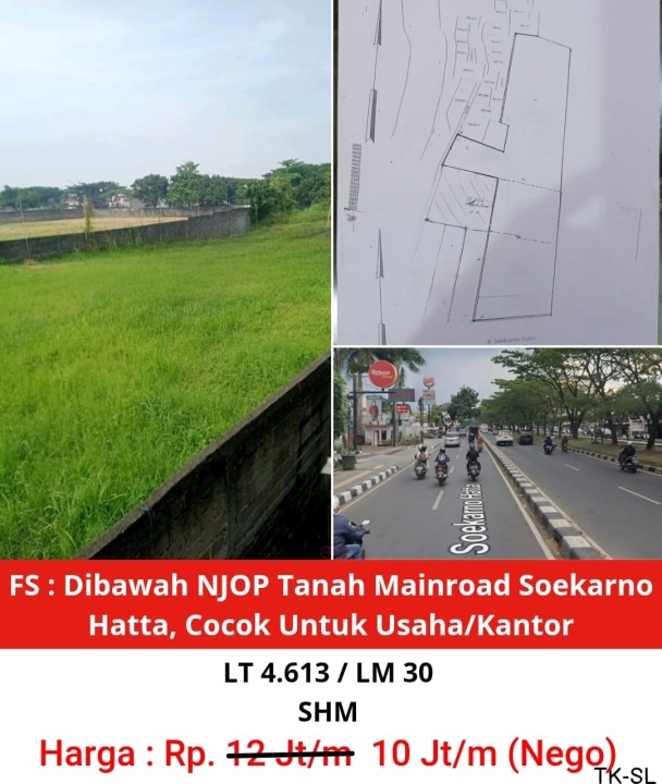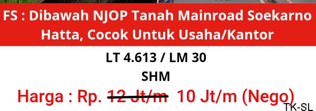Hanya Rp. 10.000.000, anda dapat langsung dapatkan tanah strategis di daerah Soekarno Hatta ini.