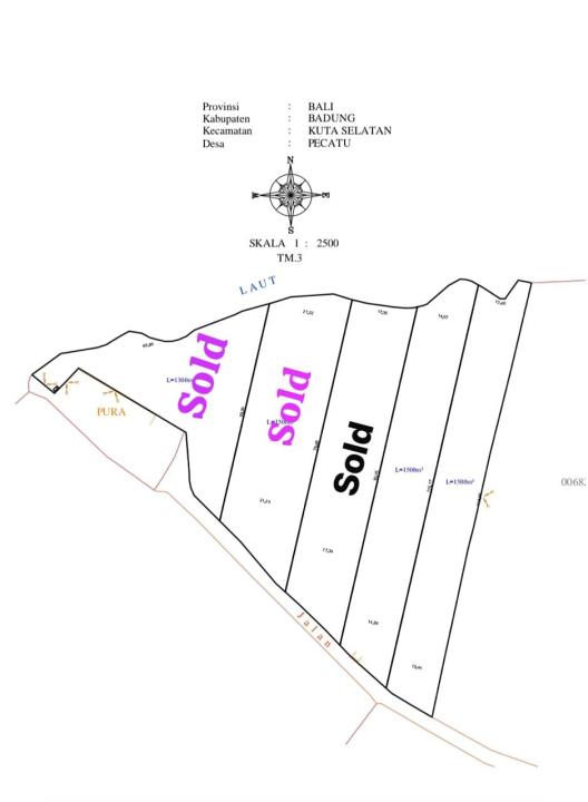 Investasi tanah murah di lokasi berkembang Uluwatu, Badung, luas 3000m². Harga hanya 360 Juta.
