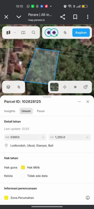 Investasi tanah murah di lokasi berkembang Ubud, Gianyar, luas 1250m². Harga hanya 68,7 Juta.