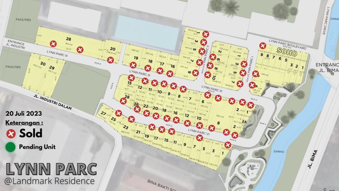 Lapangan basket, futsal, tenis, tempat bermain anak, taman tematik, sky garden, kolam renang, perpustakaan, ruang belajar, jogging track, ruang musik, Gym, salon, laundry dll