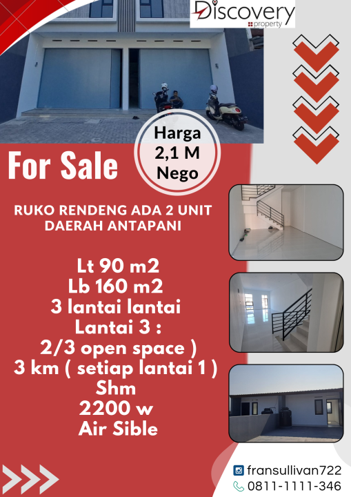 Hanya Rp. 2.100.000.000, anda dapat langsung dapatkan ruko strategis di daerah Antapani ini.