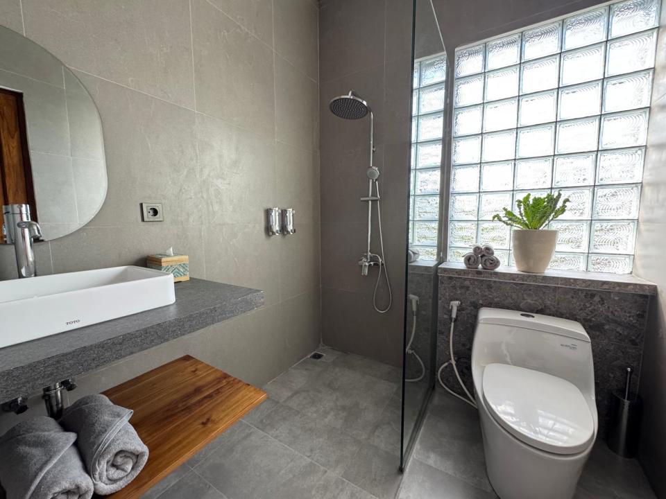 · 2 Bedroom 2 Bathroom: 2 kamar tidur utama dengan kamar mandi dalam + 1 kamar mandi tamu.