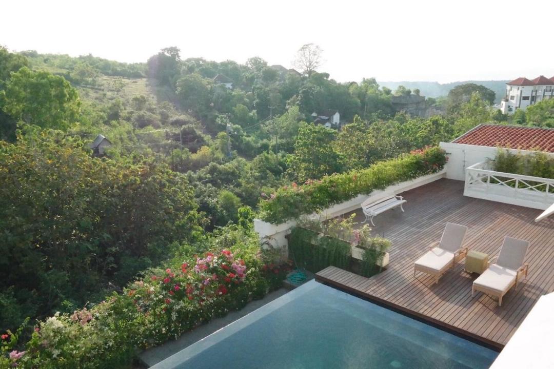 Area outdoor luas dengan pool deck yang elegan, balkon terbuka dengan pemandangan indah, dan ambience resort yang eksklusif.