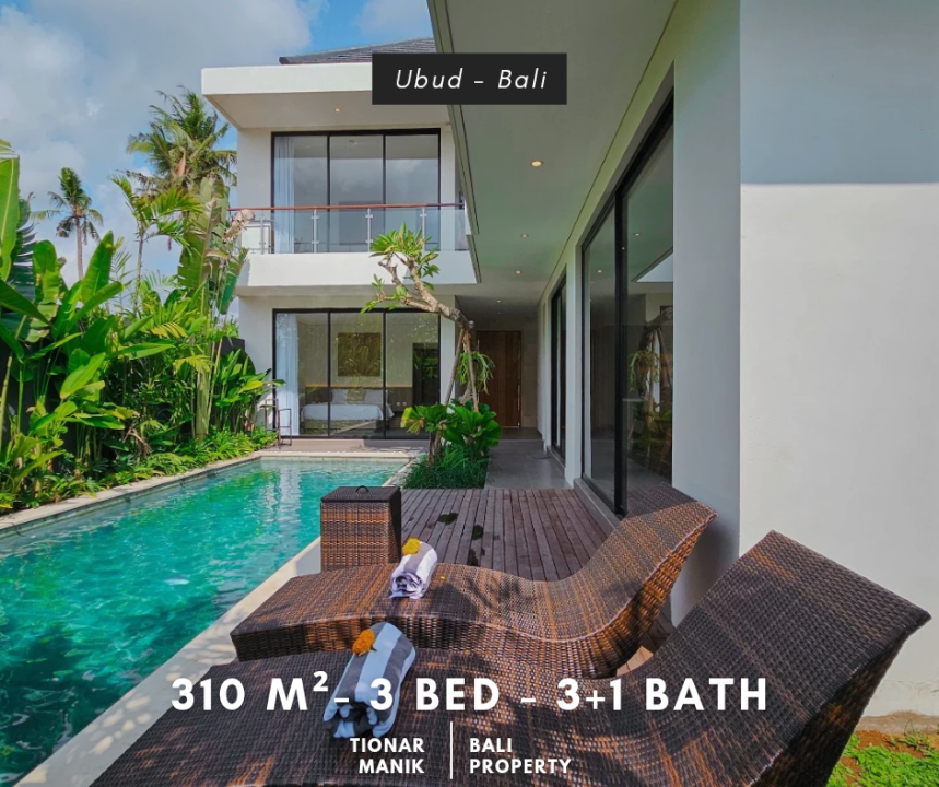 Experience luxury living in this meticulously designed 3-bedroom villa, now available for leasehold purchase or long-term rental in Ubud. Situated on 310m² of leasehold land, this 250m² property blends modern comforts with Balinese serenity.