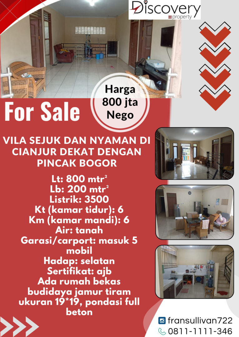 Kesempatan terbatas buat Anda dapatkan villa nyaman dengan return investasi tinggi di Cipanas, Cianjur.