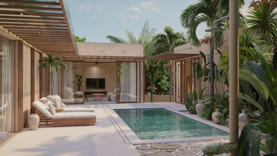 towering teak trees of Pecatu, Oasis Villas emerge organically from their