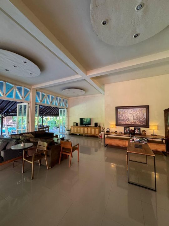 Villa ini berdiri sebagai properti unik berkat inspirasi desain "Joglo Modern". Atap kayu jati yang tinggi dan detail kayu berkelas menciptakan atmosfer yang teduh dan penuh karakter, sementara sentuhan modern pada fasilitasnya memastikan kenyamanan hidup prima. Setiap sudut ruang dimanfaatkan dengan pencahayaan alami, menghadirkan nuansa yang lapang dan menyegarkan.
