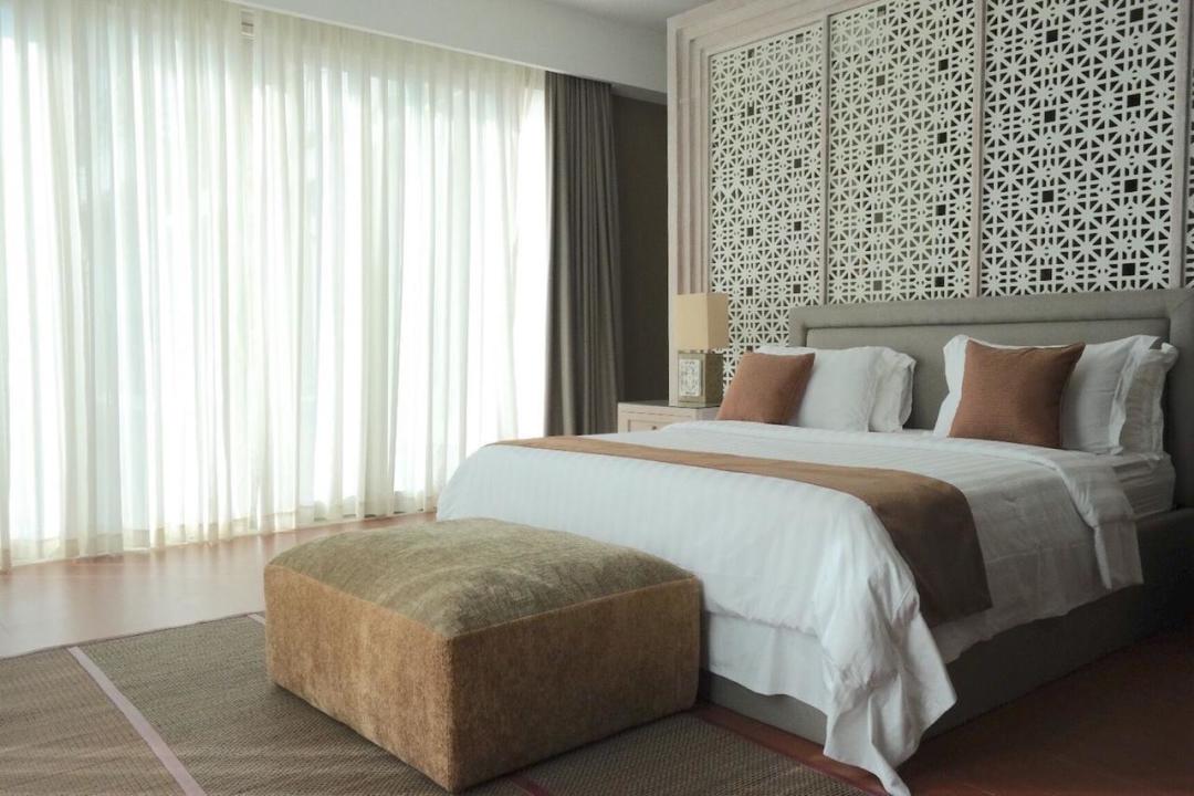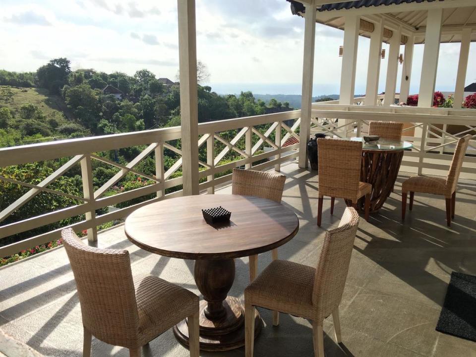 Area outdoor luas dengan pool deck yang elegan, balkon terbuka dengan pemandangan indah, dan ambience resort yang eksklusif.