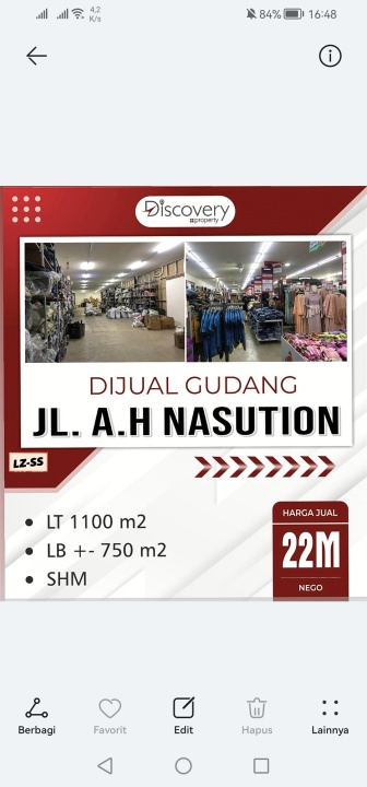 Hanya Rp. 22.000.000.000, anda dapat langsung dapatkan gudang strategis di daerah Kiaracondong ini.