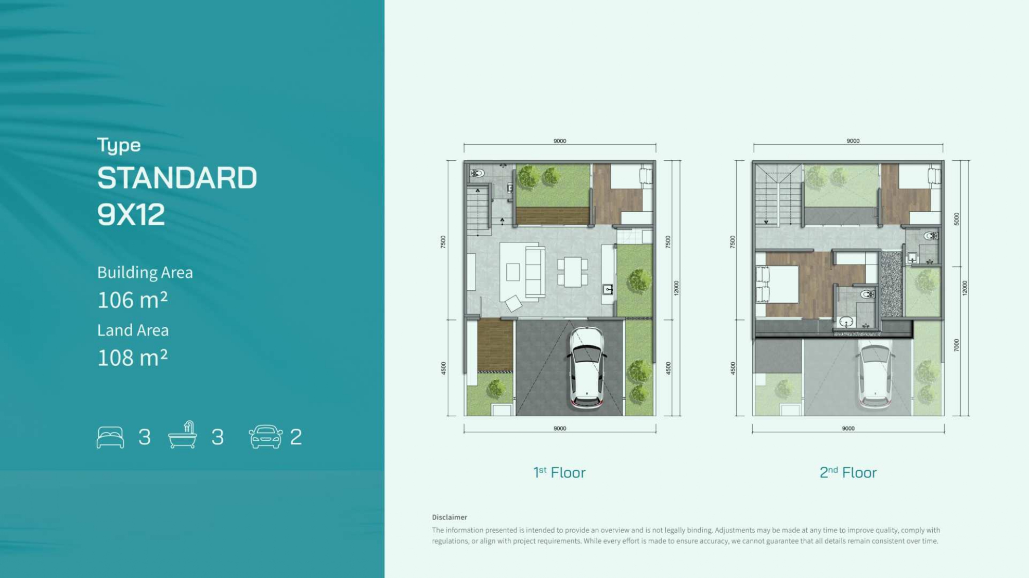 • Standard: Luas bangunan 106 m² | Luas tanah 108 m² | 3 kamar tidur | 3 kamar mandi